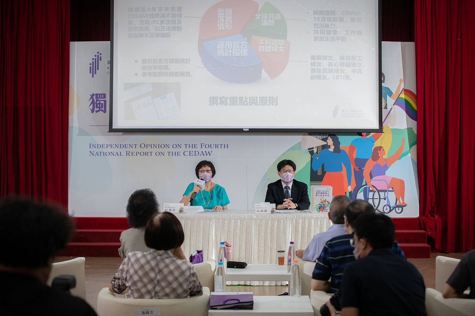 紀惠容說明,有別於國家報告與NGO民間團體報告,人權會撰寫的CEDAW獨立評估意見重視結構性問題,特別關注這些年來我國尚未落實的議題,聚焦在疫情下的婦女權利、性別暴力與司法救助權、家事移工權益、婦女工作與家庭生活平衡,以及不利處境群體婦女、雙性人、跨性別者與同志權益。